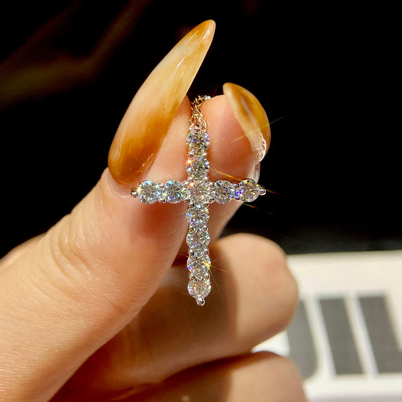 Full Moissanite Cross Pendant Necklace Original 925 Sterling Sliver Chain Plated
