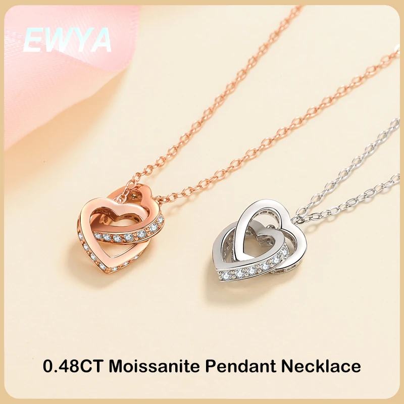 EWYA 100% Real 0.48CT Moissanite Pendant Necklace for Women S925 Sterling Silver Diamond Neck Chain Necklaces Fine Jewelry