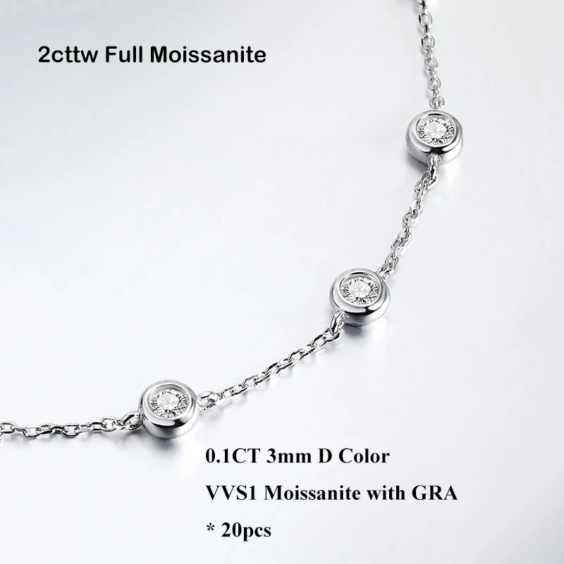 Bubble 3mm 2cttw D Color VVS1 Full Moissanite Tennis Necklace for Women S925 Sil