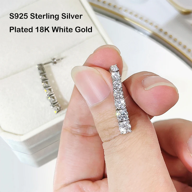 EWYA Luxury 100% Real D Color 2.82cttw Moissanite Drop Earring for Women S925 Silver 7-Stone Diamond Long Tassel Dangle Earrings