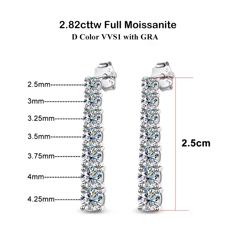 Luxury 100% Real D Color 2.82cttw Moissanite Drop Earring for Women S925 Silver