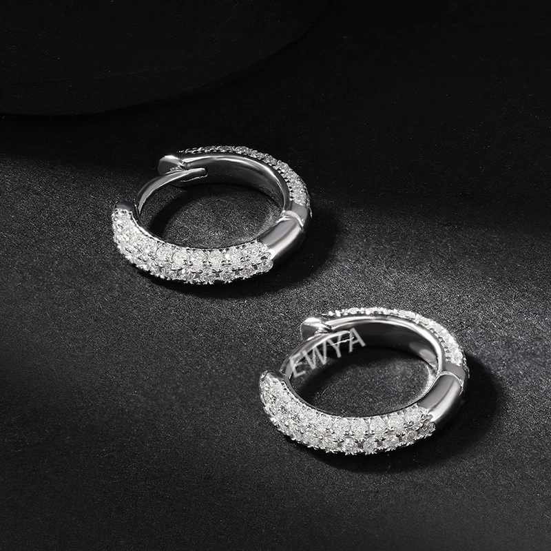 EWYA Luxury Designer 0.8cttw D Color Full Moissanite Hoop Earrings S925 Sterling Silver Earring For Women Party Fine Jewelry Gift