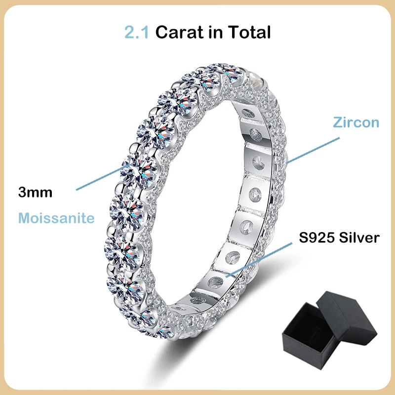 EWYA Luxury Real 0.1CT 3mm Moissanite Diamond Ring for Women S925 Sterling Silver Full Enternity Rings Wedding Band Fine Jewelry