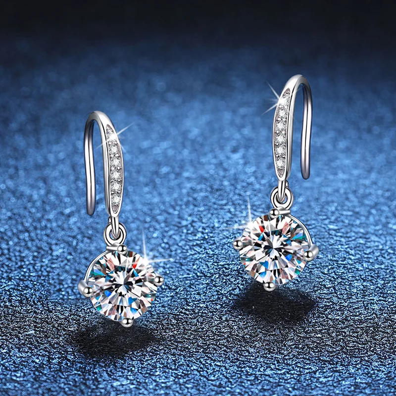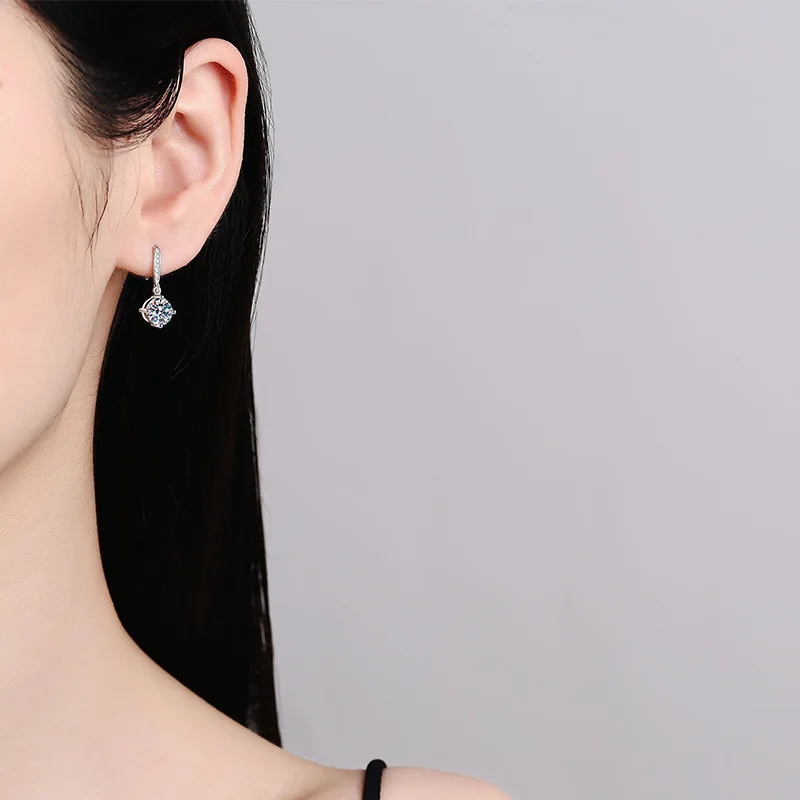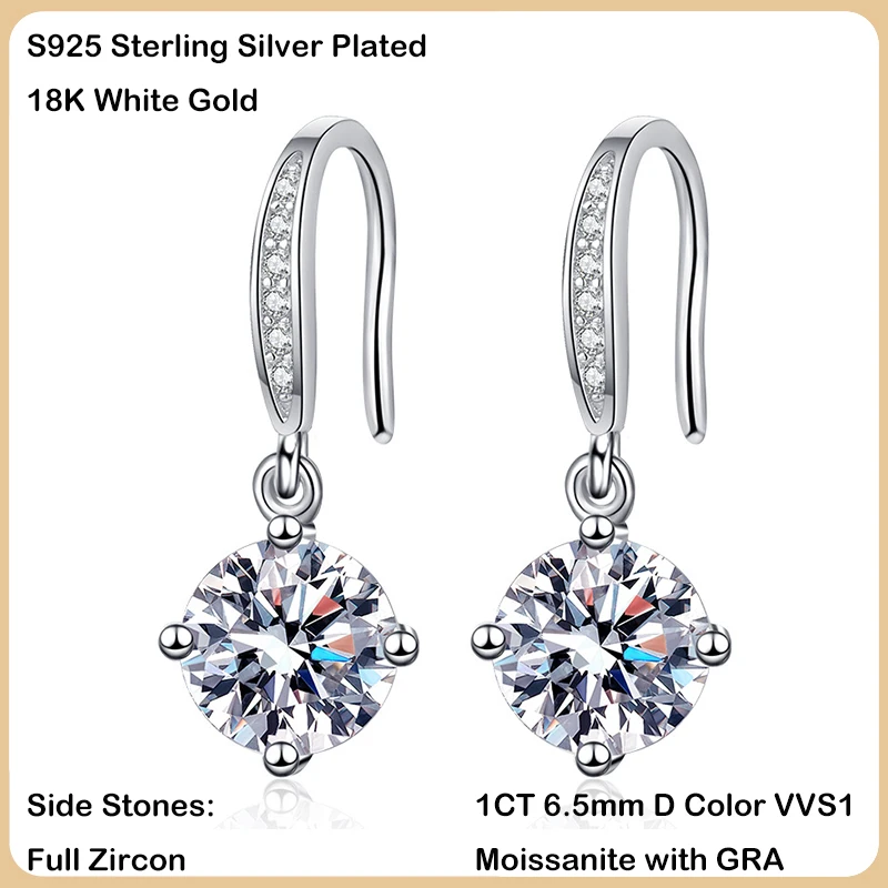 Luxury Real 1CT D Color 4 Prong Moissanite Drop Earring for Women Girl S925 Silv